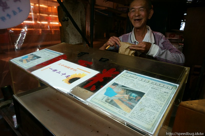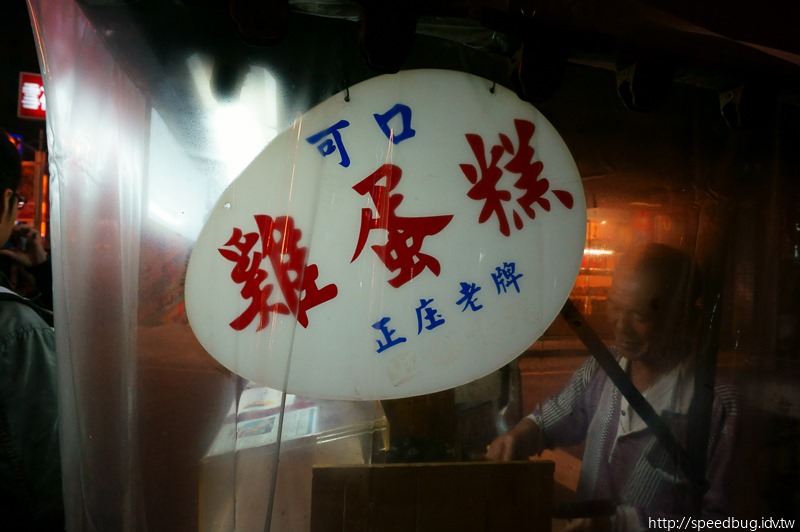 一位相當可愛的阿伯正烤著雞蛋糕,阿伯也熱情的跟我們打個招呼。本來想要人手一包雞蛋糕不過現場已經賣的