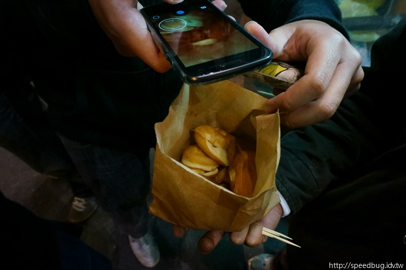 從火車站走往文化街夜市的路上,飢腸轆轆的我們突然被飄來的香甜味吸引,大家不約而同的停在這個攤位前。