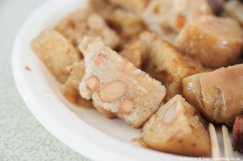 而且大腸用了相當多的花生,切的這麼小塊上面還都有花生,入口就是花生香味。香腸屬於細細長長型的跟一般